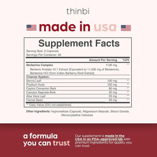 Capsules - 1500mg - Berberine - Thinbi - 15 Day Cleanse - 30ct - 2pack