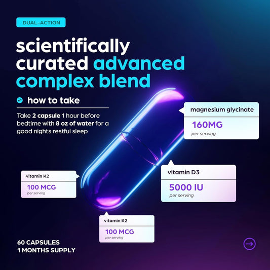 Magnesium Glycinate 1160mg + Aloe Vera, D3 & K2 Complex